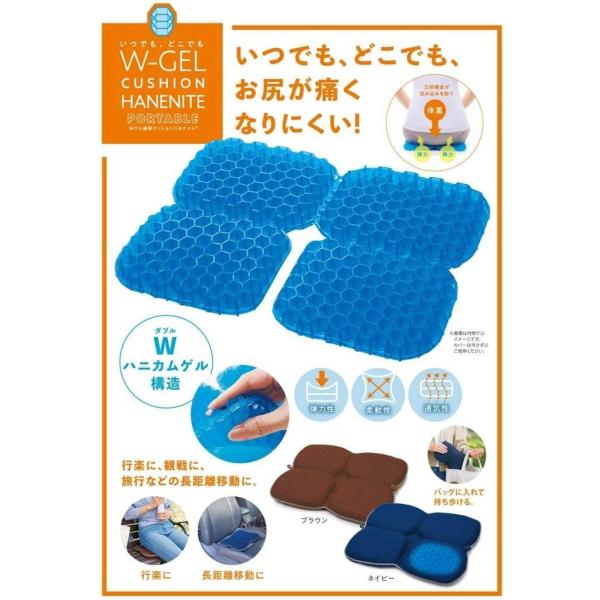 Wゲル 携帯クッション ハネナイト ネイビー(コジット)ジェル ゲル 折りたたみ ハニカム構造 体圧分散