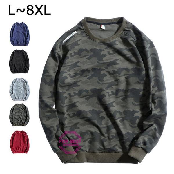 トレーナー メンズ 迷彩柄 スウェット おしゃれ ビッグシルエット メンズトレーナー L-8XL 大きいサイズ 秋服