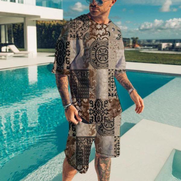 ジャージ メンズ 上下 おしゃれ 30代 40代 50代 セットアップ プリント柄 総柄 半袖Tシャツ 短パン スポーツウェア ゴルフウェア スウェット 夏