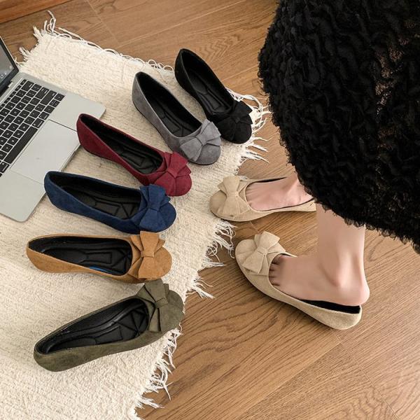 パンプス レディース バレエシューズ スクエアトゥ ぺたんこ リボン フラットシューズ りぼん コーデ 小さいサイズ 大きいサイズ フラット 21.5CM 26.5CM