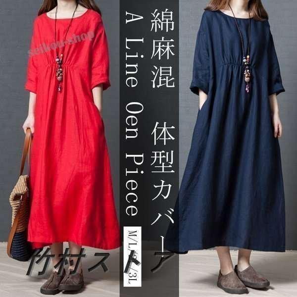 期間 ワンピース コットンリネン ロングワンピース 綿麻混 半袖 長袖 ロング丈ワンピース 体型カバー 大きいサイズ 春 夏 ワンピ 着痩せ