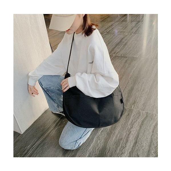 ショルダーバッグ レディース 斜めがけ 肩掛け 大人 帆布 キャンバス 三日月 かわいい ファスナー開閉 無地 シンプル タグ カジュアル 大容量 マザーズバッグ