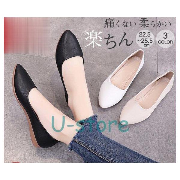 パンプス ローヒール 痛くない 歩きやすい 柔らかい おしゃれ レディースシューズ 靴 フラットシューズ ぺたんこ 低反発 通勤 太ソール 究極プレーン