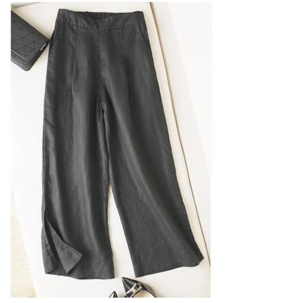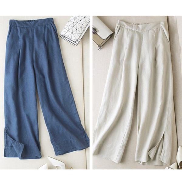 選べる3タイプ 綿麻混 リネン混 9分丈ワイドパンツ スリット入り リネン 麻 スカート
