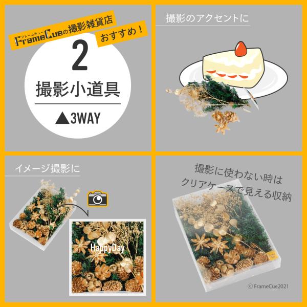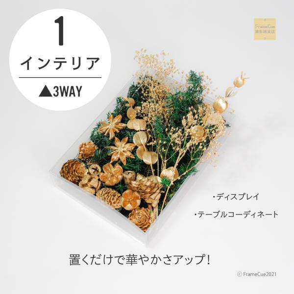 FrameCue【ハコツメFlower▲3WAY】グリーン&ゴールド インテリア・撮影小道具・花材