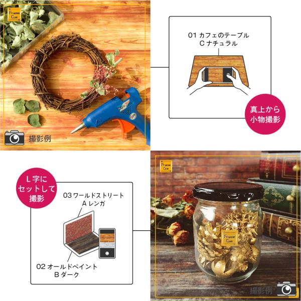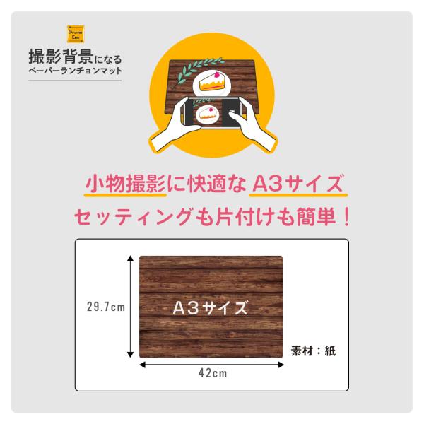 撮影現場で人気の木目撮影背景シートなどを家庭でも使いやすいランチョンマットタイプ(小物撮影に最適なA3サイズ)にアレンジしました。
