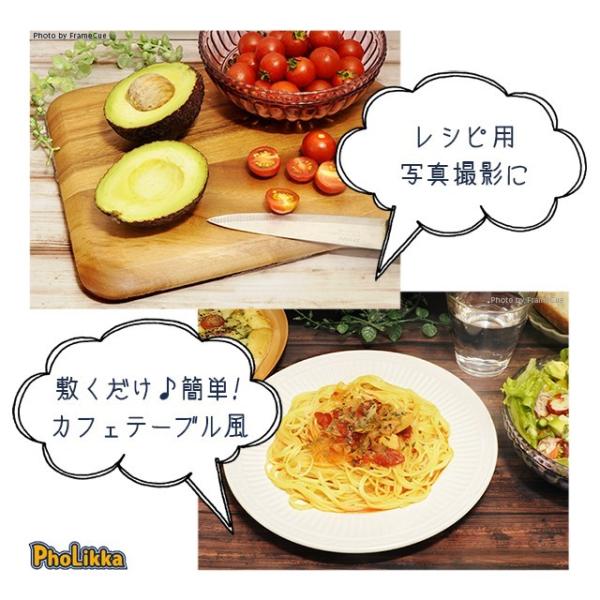 撮影現場で人気の木目背景シートなどを家庭でも使いやすいランチョンマットタイプにアレンジしました。