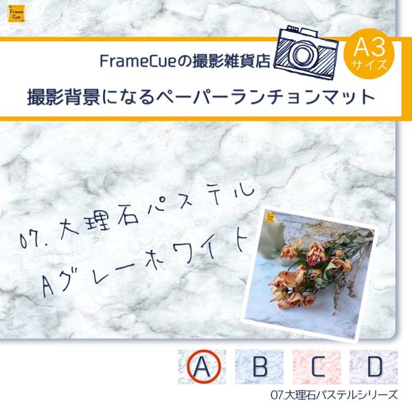 FrameCue 10枚セット 07大理石パステルAホワイトグレー(1柄×10枚)撮影背景になるペーパーランチョンマット A3 背景紙 ペーパーランチョンマット 撮影