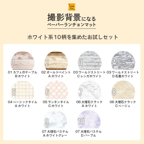 FrameCue ホワイト系10柄お試しセット(10柄×各1枚)撮影背景になるペーパーランチョンマット A3 背景紙 ペーパーランチョンマット 撮影 バックペーパー