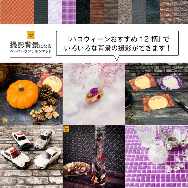 発売されている「撮影背景になるペーパーランチョンマット」11シリーズ44柄の中からハロウィーンにおすすめの柄を12枚集めました!