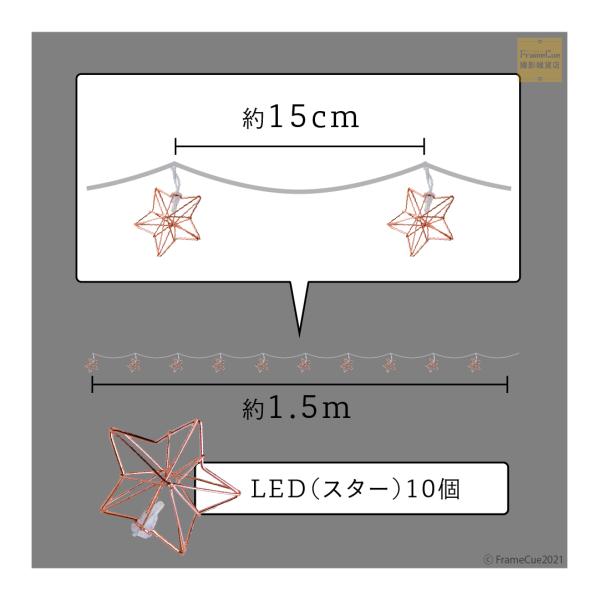 【LED】ゴールドスター型ガーランド 1.5m 室内用 クリスマス ディスプレイ 撮影 小道具