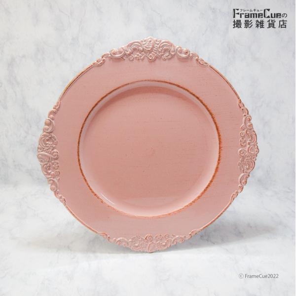 アンティーク風トレイ(コーラルピンク)撮影用 トレー プレート 皿 アクセサリー 小物 雑貨 置き 撮影 背景