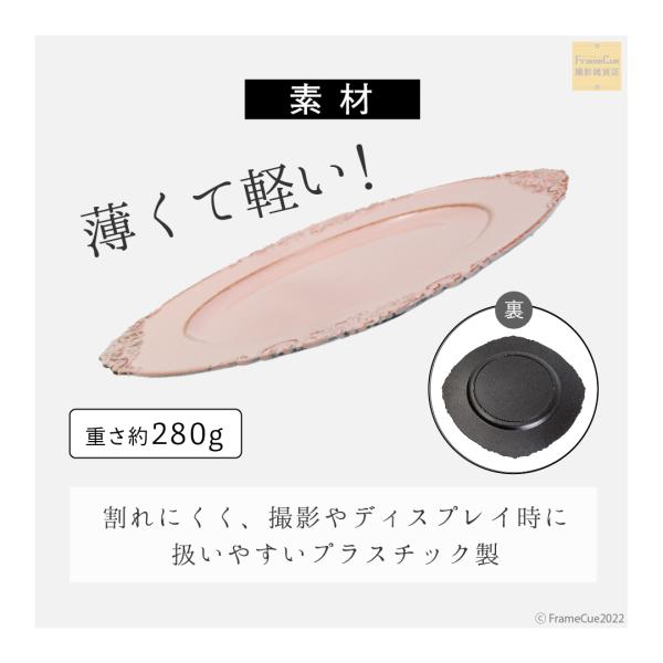 撮影やディスプレイ時に扱いやすい、薄くて軽いプラスチック製です。