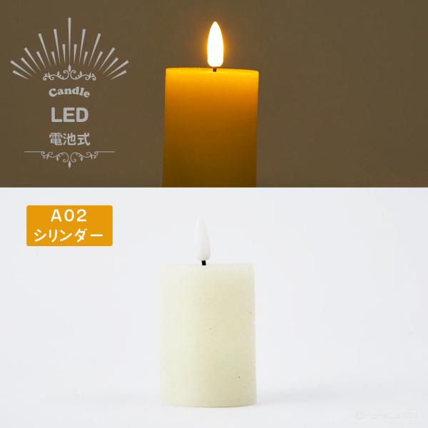 LED ライト キャンドル 「A02 シリンダー」 高さ10cm 1本 (タイプA:直径5cm) ゆらぎ 灯り ろうそく パラフィンワックス 電池式 電池付属