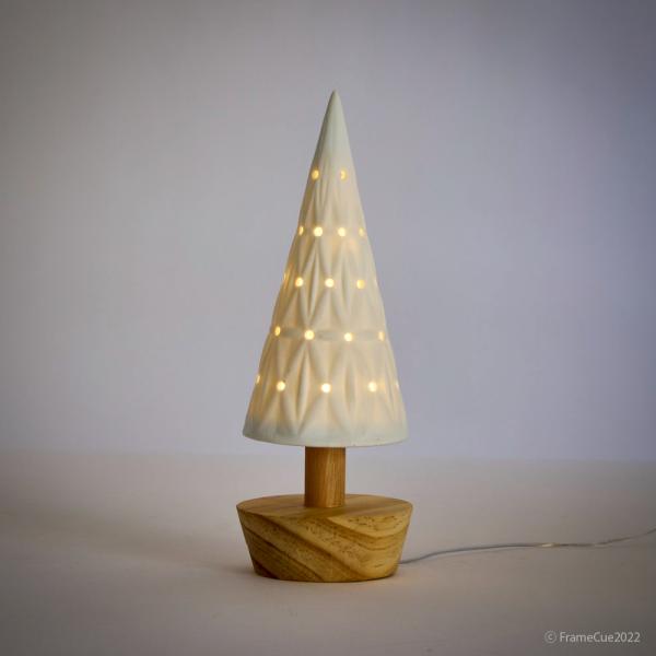 レース模様と雪のようなドット模様が施された陶器のLEDライト。