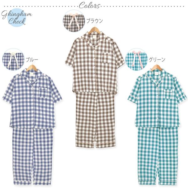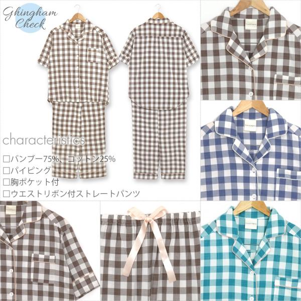 【商品特徴】 半袖 パジャマ 開襟 ギンガムチェック 上下 天然素材 通気性 吸水性 コットン バンブーコットン 安心 気持ちい ポケット サスティナブル ≪企画:日本 - 生産:中国≫