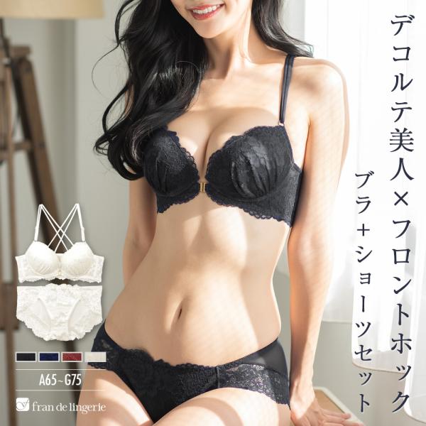 ブラジャー ショーツ セット フロントホック ブラ 下着 レディース 背中見せ 上下 セクシー かわいい 谷間 盛れる フランデランジェリー