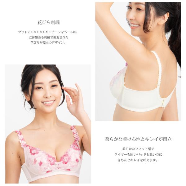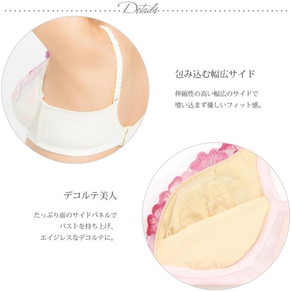 下着 補正下着 レディース ブラジャー ノンワイヤー 単品ブラジャー ブラ 単品 ブラジャー単品 ブラ単品 補正 らくらく補正 脇肉補正 脇肉 脇高 レース ワイヤレス 楽 大きいサイズ d75 花びら 刺繍 お揃い コーデ 快適 大人可愛い fran