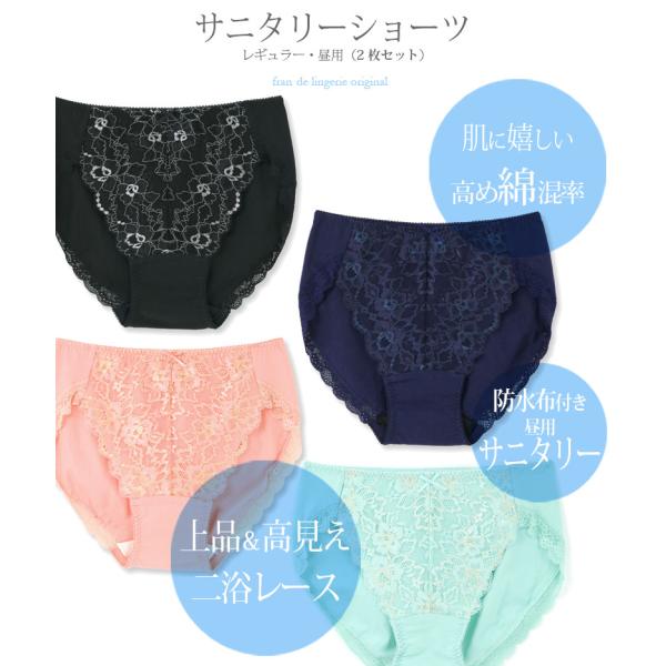 サニタリーショーツ レギュラー用 2枚組 生理用 綿 レース 羽根つき ジュニア お徳用 ウイング fran de lingerie