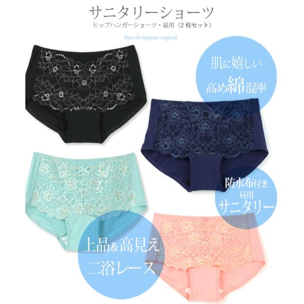 サニタリー ショーツ 2枚セット 生理用 fran ヒップハング ウィング対応 ショーツ フランデランジェリー レディース
