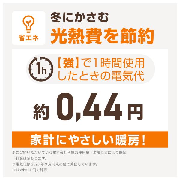 電気代:(1時間あたり)約0.37円 (1kWh=31円で計算)