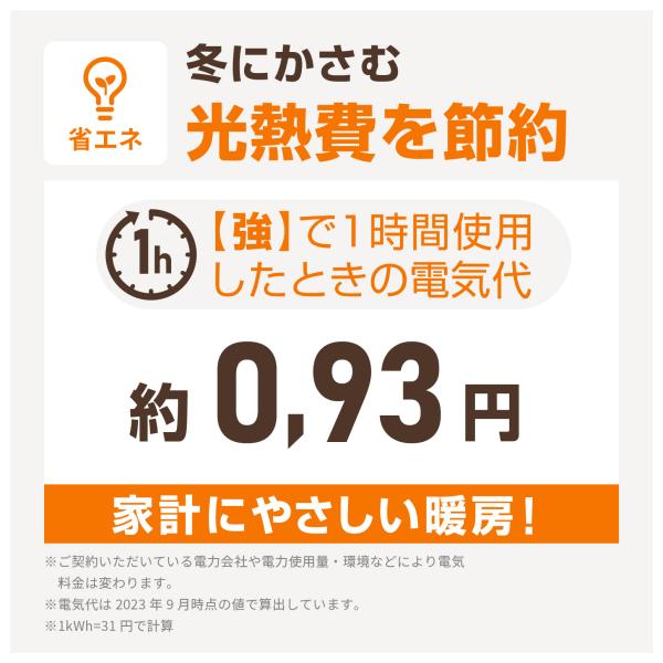 電気代:(1時間あたり)約0.93円 (1kWh=31円で計算)