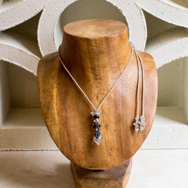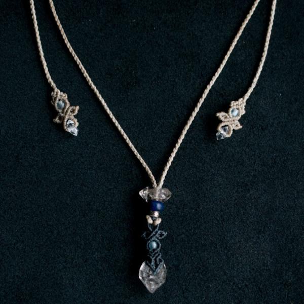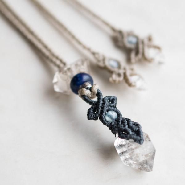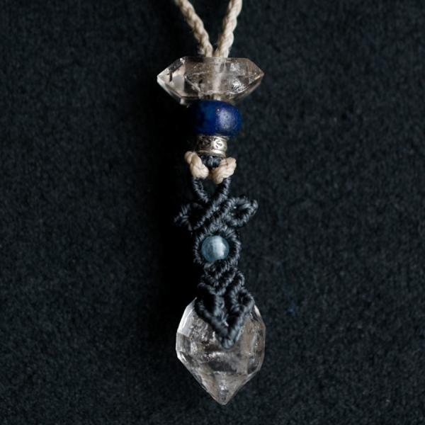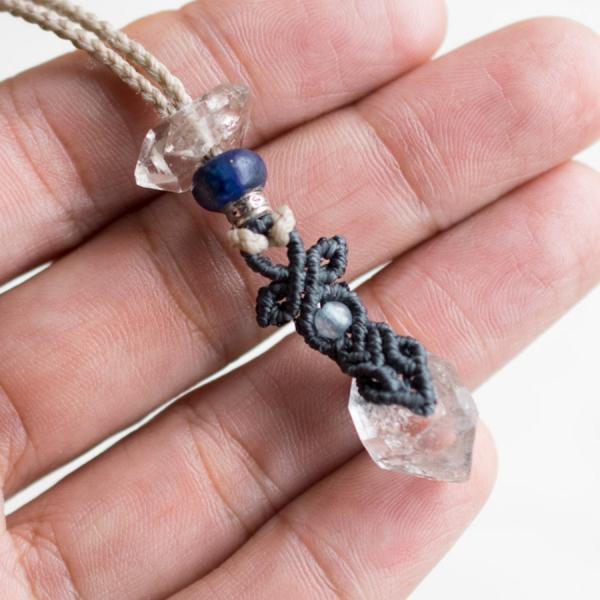 ラピスラズリ ダイヤモンドクォーツ 014 マクラメ ペンダント ネックレス ハーキマーダイヤモンド 天然石