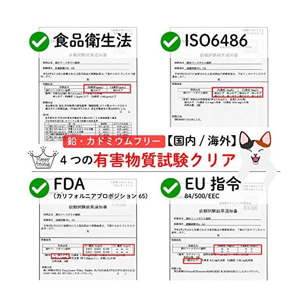 ・人と同じ安全基準を。「鉛・カドミウムフリー」食器。国内海外4つの有害物質試験をクリアしています。