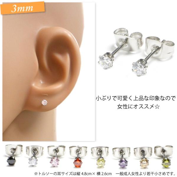ステンレスピアス 1ペア ラインストーン付き 20G(0.8mm) 3mm 4mm 5mm 6mm 全8色 レディース メンズ 定番ピアス 金属アレルギー シンプル【メール便対応】 ┃