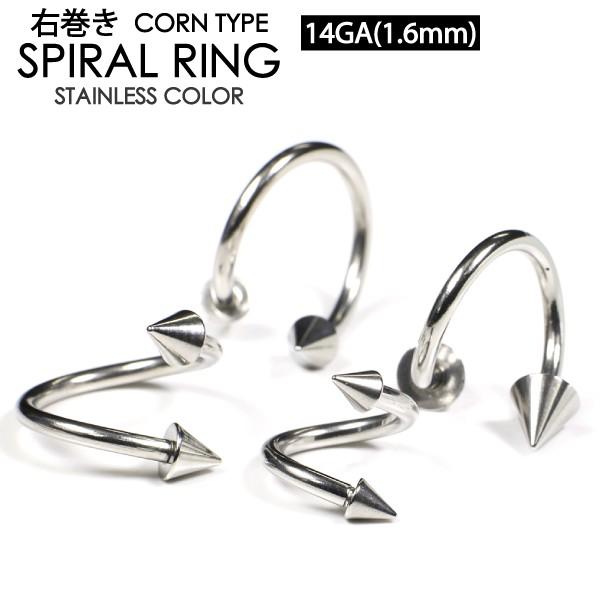 ツイスト スパイラル コーン 14G (1.6mm) 右巻き サージカルステンレス316L スパイラルリング スパイク ボディピアス 口ピアス ロブ 14ゲージ【メール便対応】┃