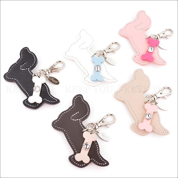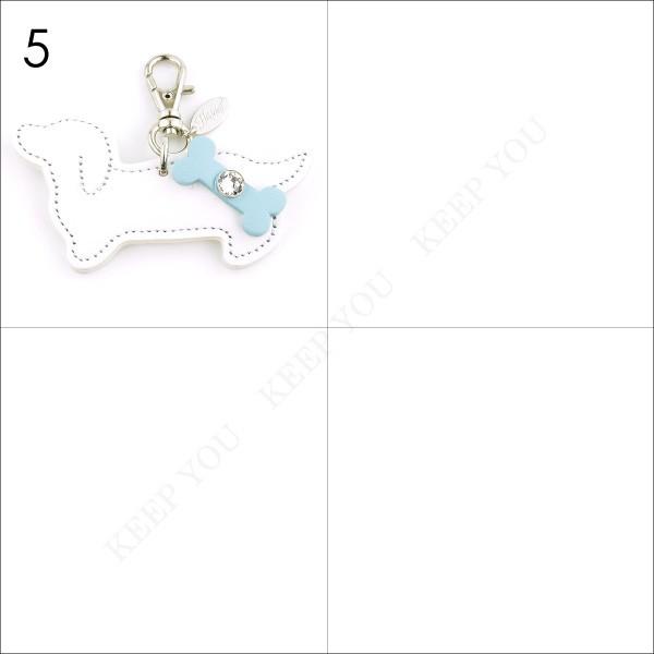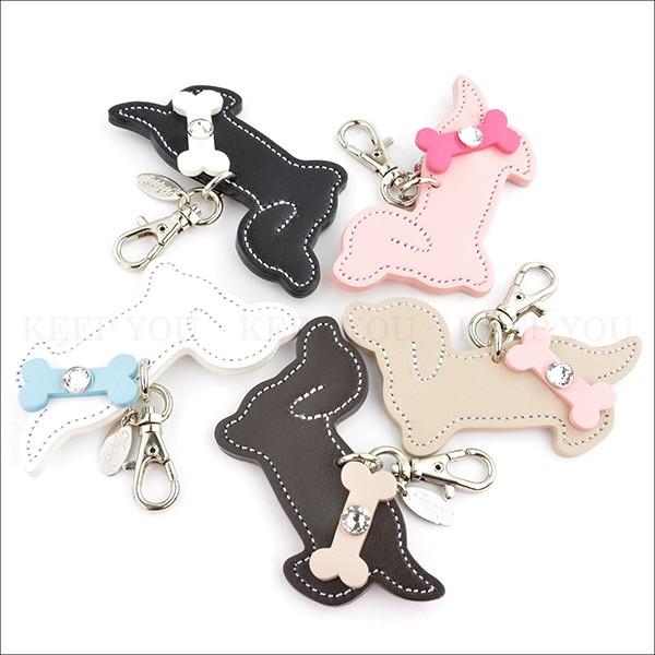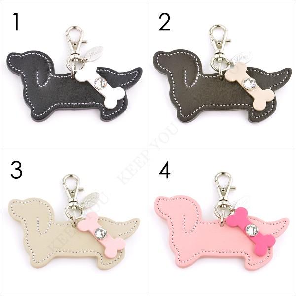 ダックスフンド チャーム 犬 牛本革 スワロフスキー付き Happy 全5色 キーホルダー リード 首輪 キーリング 日本製 ハッピー hc-29【メール便対応】┃