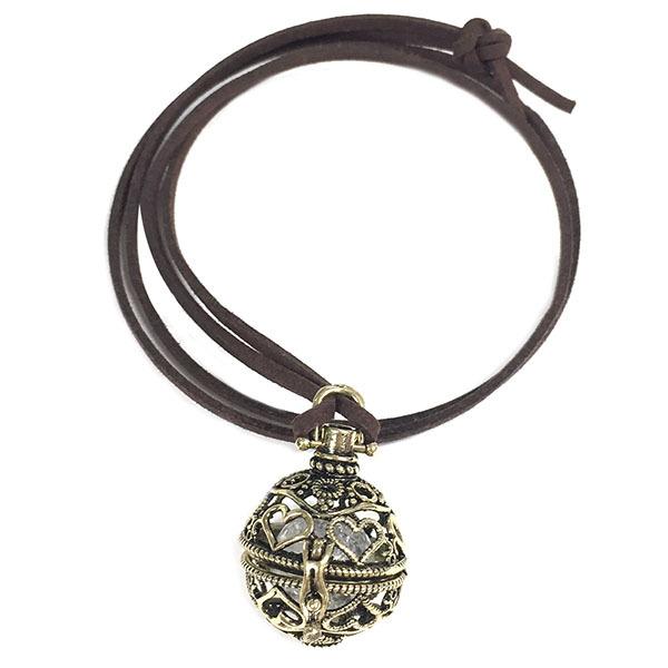 ペンダント トップ コード付き ドロップ型 球体 アンティークカラー ストーン入れ替え型 アロマ アンティーク調 天然石 ネックレス パーツ 【メール便対応】┃