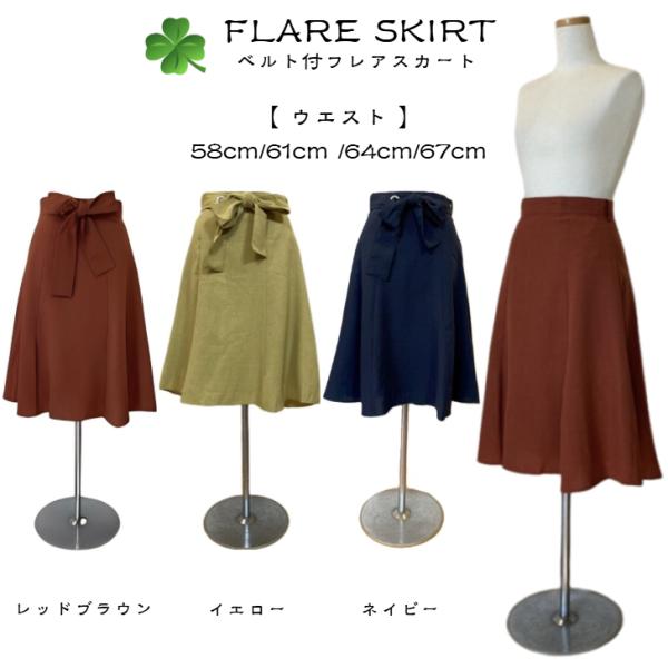 フィッシュテール スカート レディース きれいめ ベルト付 レッドブラウン/イエロー/ネイビーW58cm/W61cm/64cm/67cm 送料無