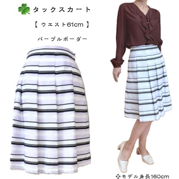 日本製 膝丈スカート レディース ボーダー パープル W61cm 送料無料