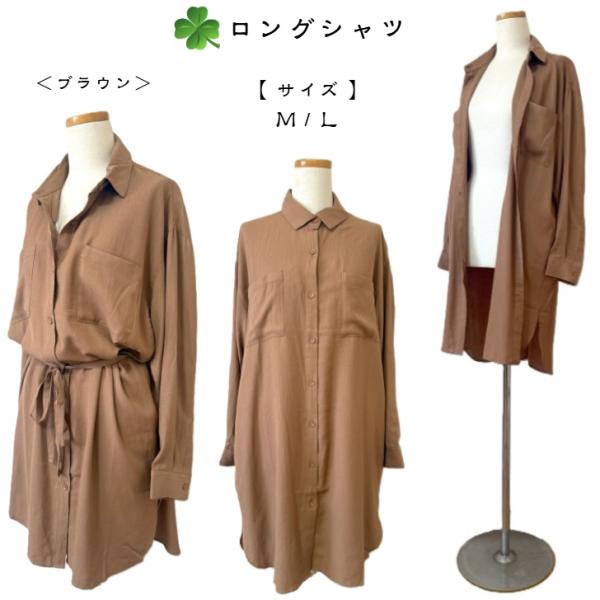 ロングシャツ レディース シャツワンピ ブラウン M/L 送料無料
