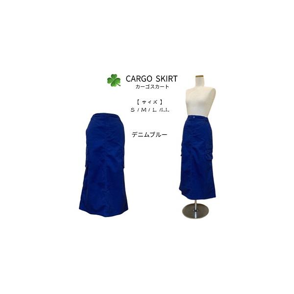 カーゴスカート ロングスカート デニム 伸縮 ブルー S/M/L/LL 送料無料