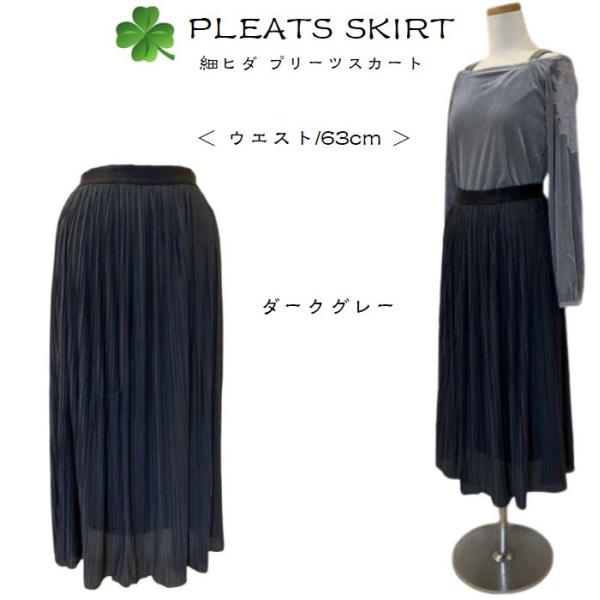 プリーツスカート レディース ロングスカート 細ヒダ ダークグレー W63/H90 送料無料
