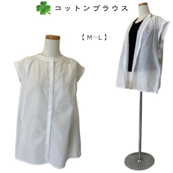 コットンブラウス 袖なし レディース ホワイト M〜L 送料無料