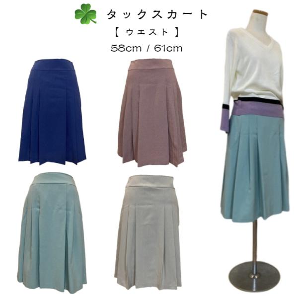 日本製 膝丈スカート タックスカート ベージュ/ネイビー/グリーン/ピンク W58cm/61cm 送料無料