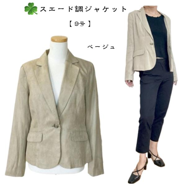 ジャケット レディース シングル ベロア調 ベージュ 9号 送料無料