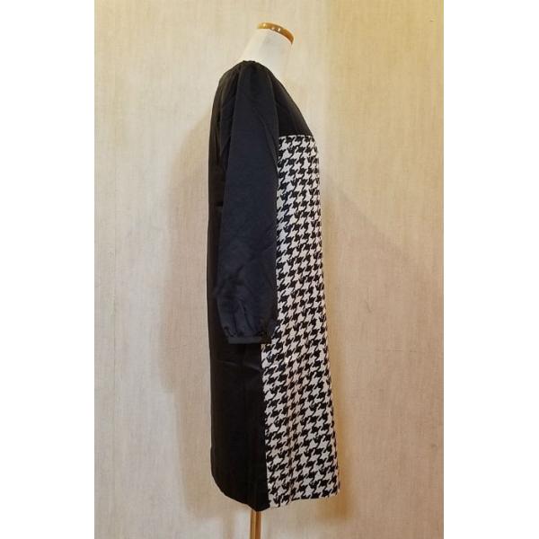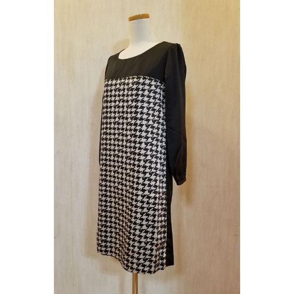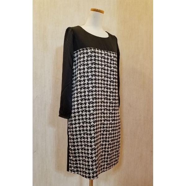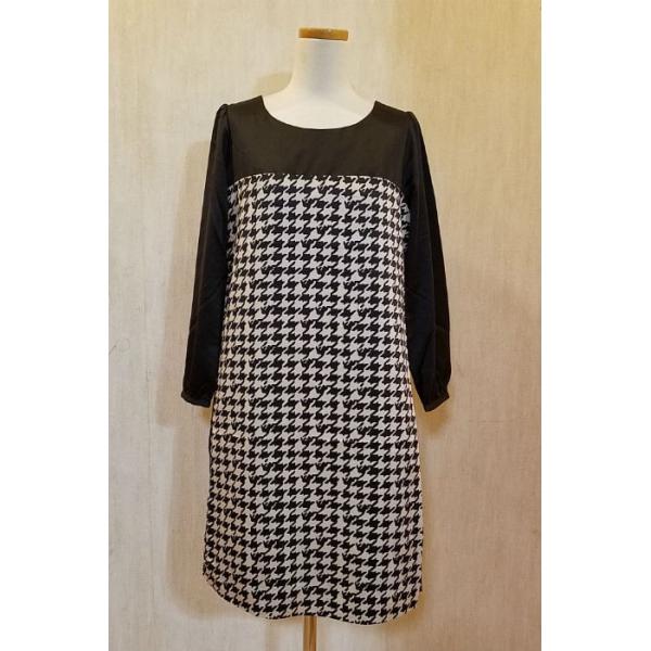 ワンピース レディース 長袖 膝丈 切替柄 千鳥格子 7号/9号/11号 ブラック/ネイビー 送料無料