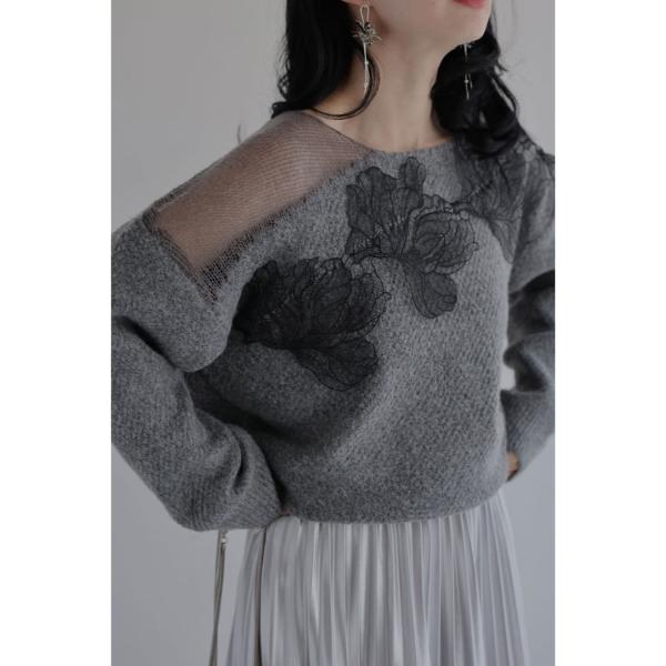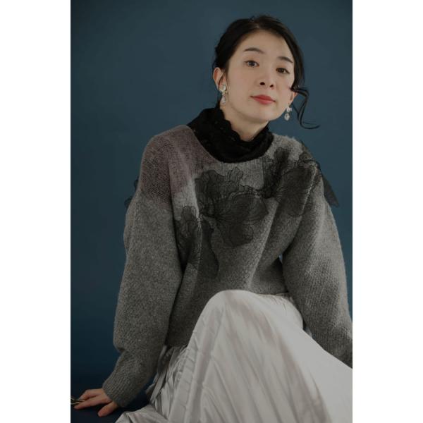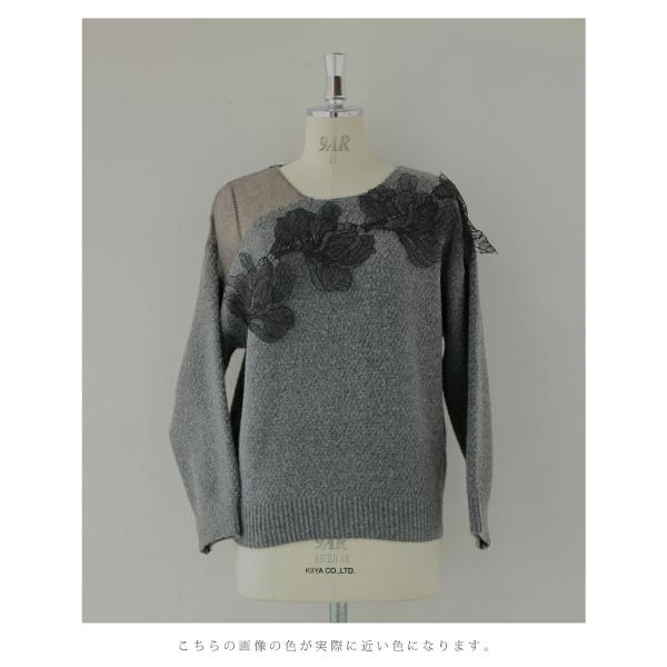 w61609ps 新作 新着 再入荷 CAWAII FRENCHPAVE フレンチパヴェ エレガント ベーシック カジュアル 可愛い かわいい カワイイ おしゃれ オシャレ お洒落 個性 個性的 定番 ベーシック 大人かわいい 大人可愛い 上品 女性らしい デザイン スタンダード ナチュラル きれいめ キレイめ シンプル フェミニン レディース レディースファッション 大人 ママ ミセス 30代 40代 50代 60代 ぐるりと囲む 黒花 レース ニット プルオーバー トップス 長袖 ニット モチーフ 華やか アシンメトリー メリハリ S M L フリーサイズ フリー 小さめ 小さめサイズ小さい 小さいサイズ 低身長 痩せ ほっそり 小柄 細身 標準サイズ 大きめシルエット 大きい 大きめ ビッグシルエット ぽっちゃり F サイズ自由 春 秋 冬 秋服 秋物 冬服 冬物 楽ちん 伸縮性 グレー 灰色 普段着 日常使い おでかけ 買い物 旅行 女子会 デート 大人女子