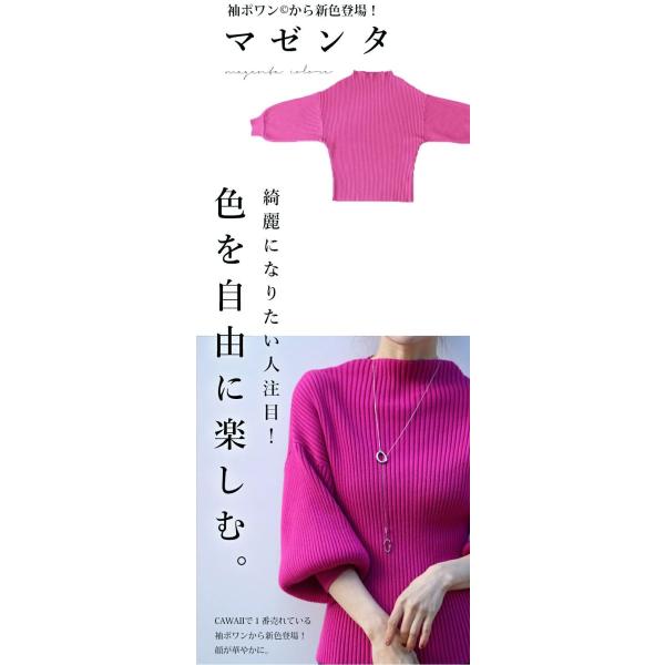 CAWAII マゼンタ SからL 2Lから3L 対応 袖ポワンとオフネックのニットトップス