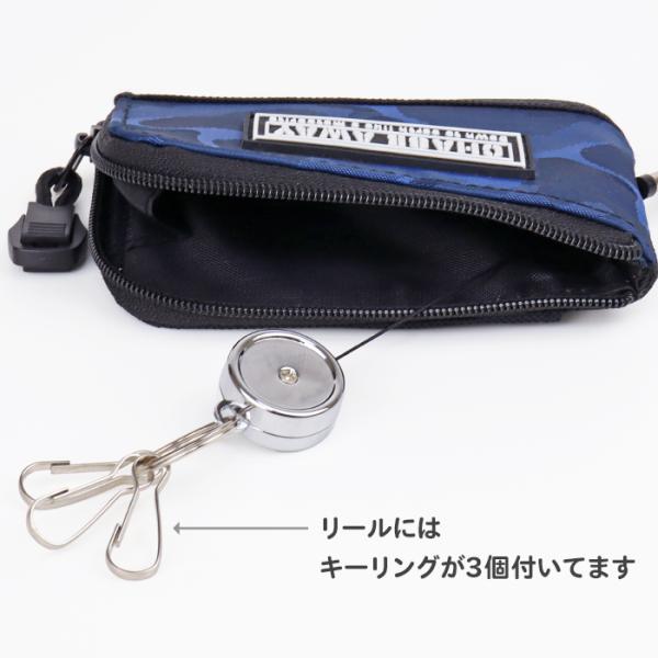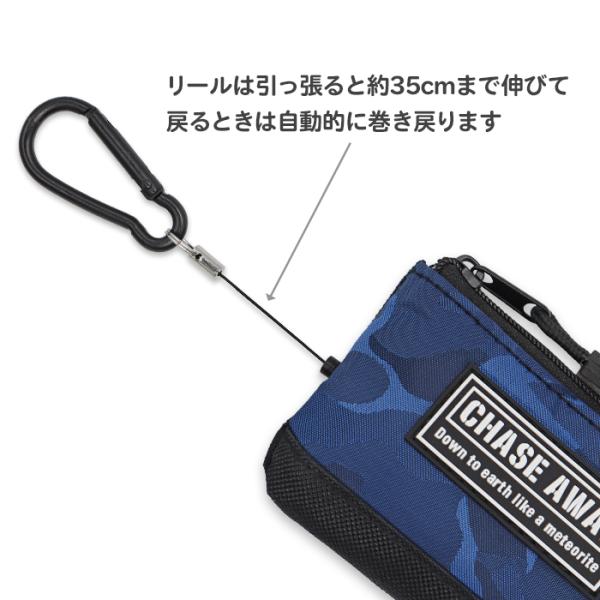 キーケース パスケース リール付き 迷彩柄 (L25406) 伸びる リール ランドセル ファスナー 男の子 キッズ 子供 小学生 中学生 高校生 男子 カラビナ付き