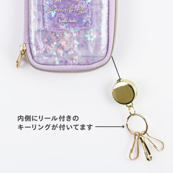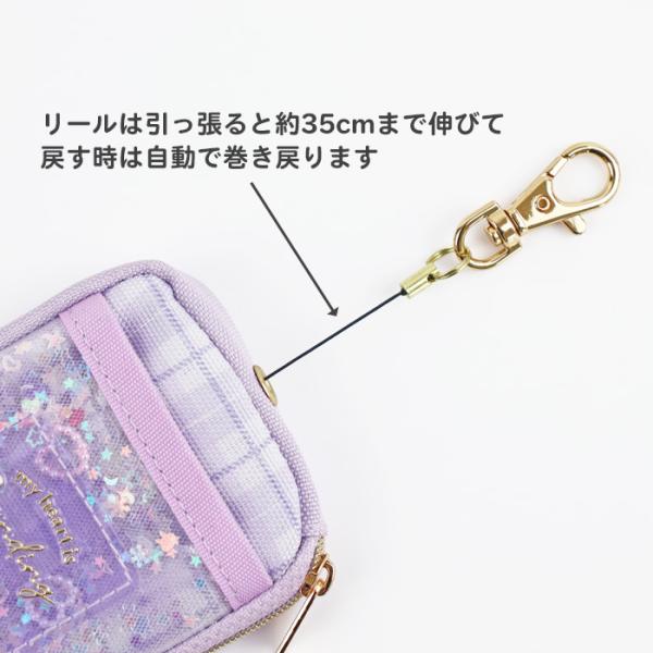 キーケース パスケース リール付き シャカシャカ クリアポケット(WC24525) 鍵入れ 定期入れ リール ランドセル おしゃれ かわいい 女の子 小学生 キッズ 子供
