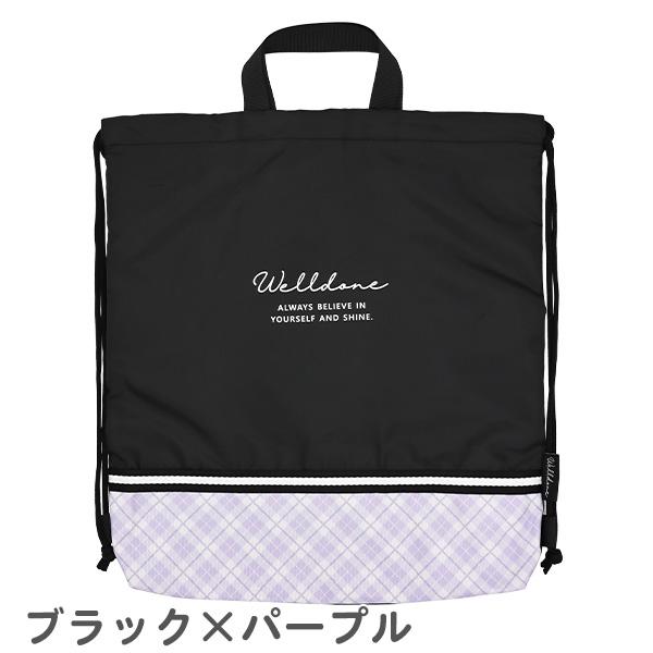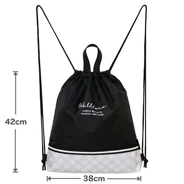 ナップサック 女の子 チェック×ロゴ (C24343) 体操服入れ 体操着入れ 体操着袋 巾着袋 プールバッグ ナップザック 小学生 キッズ 子供 こども おしゃれ