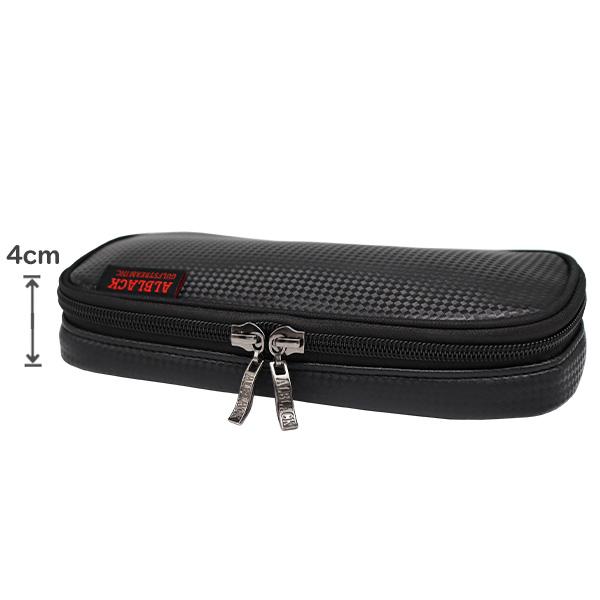 カーボン調のPUレザーを使用したブラック1色の“ALBLACK”ペンケース。