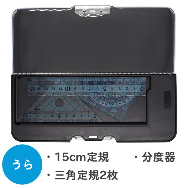 うら面には、15cm定規・三角定規・分度器が入ります。