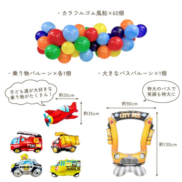 誕生日 飾り付け 車 男の子 パトカー バス 飛行機 バルーン バースデー 乗り物 セット デコレーション くるま バルーンガーランド 飾り 風船