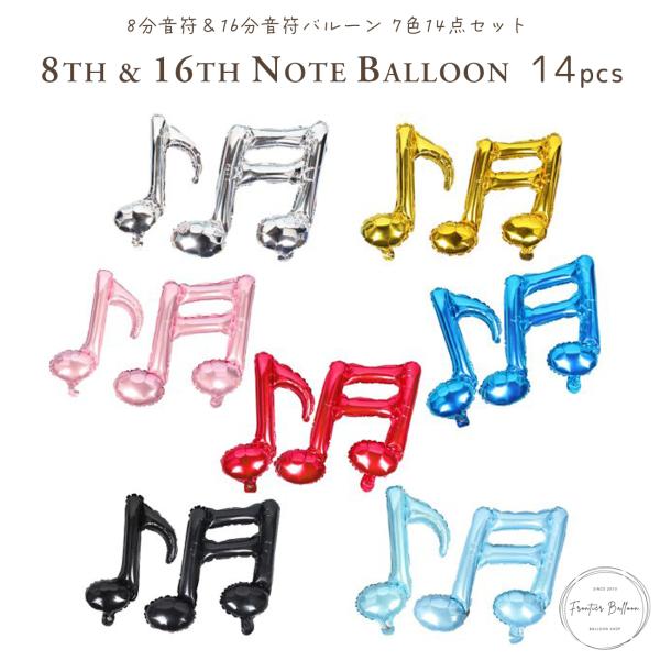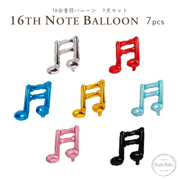 音符 16分音符 バルーン 風船 全7点 発表会 演奏会 ピアノバイオリン 音楽 お祝い 誕生日 パーティー 結婚式 各色1点入り 単音符 ぺたんこ配送 送料無料
